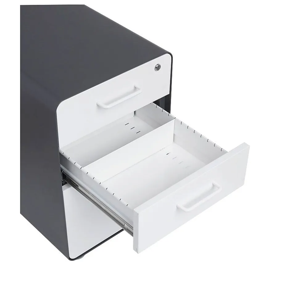 - Stow file cabinet with durable powder-coated steel construction with steel interior gray caster