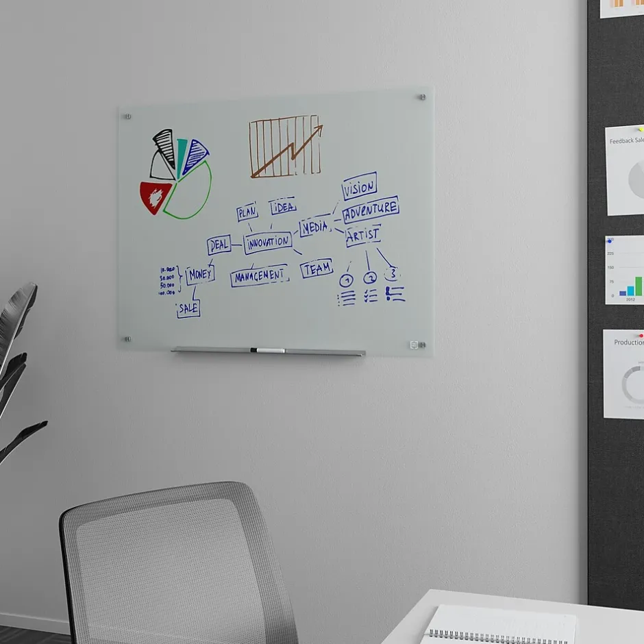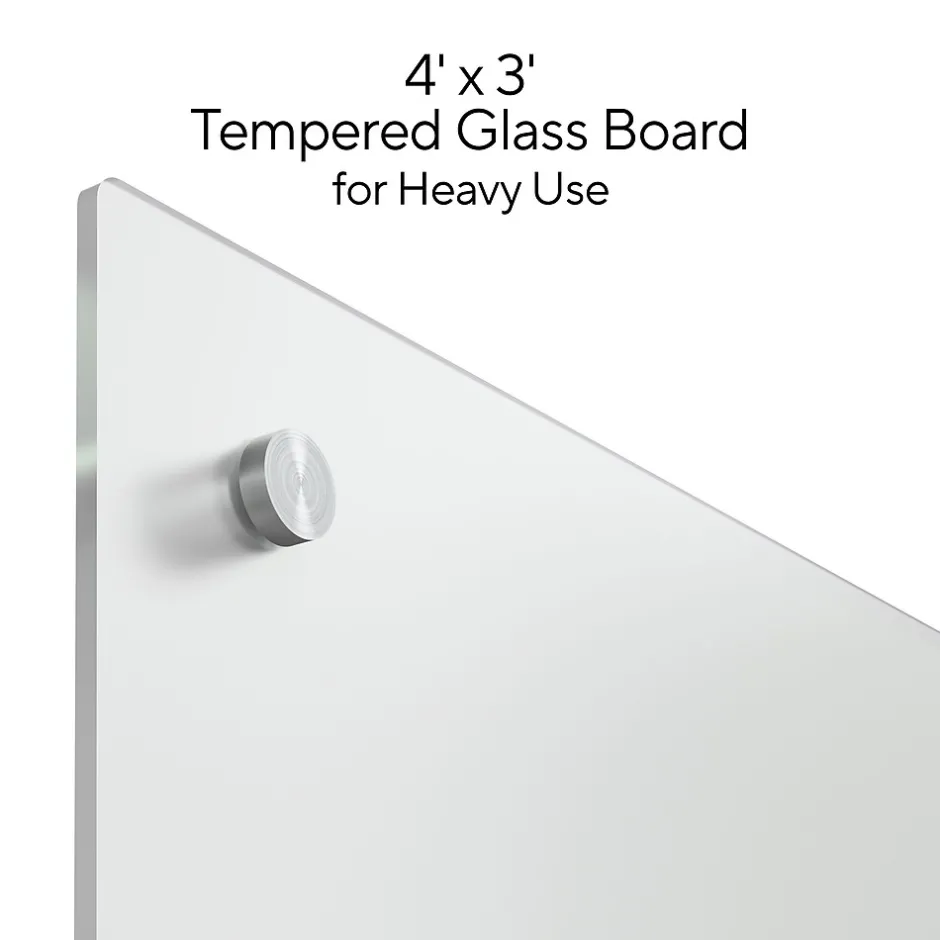- 4′ x 3′ premium glass dry-erase surface with frameless design