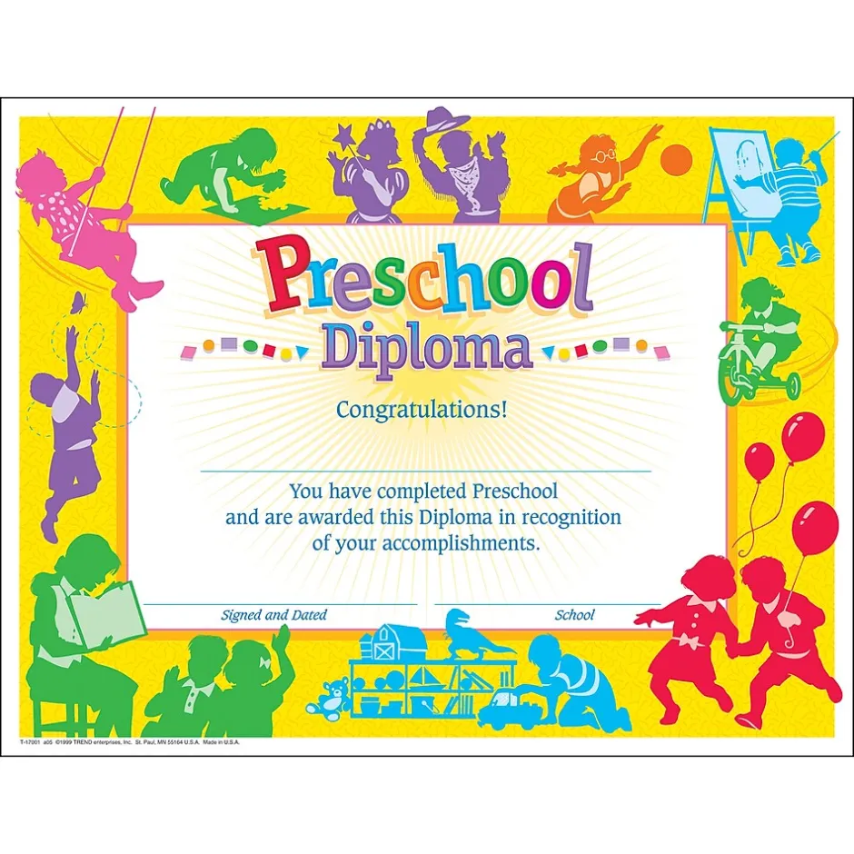 - Classic Preschool Diploma, Multicolored; Use for any classroom or school award