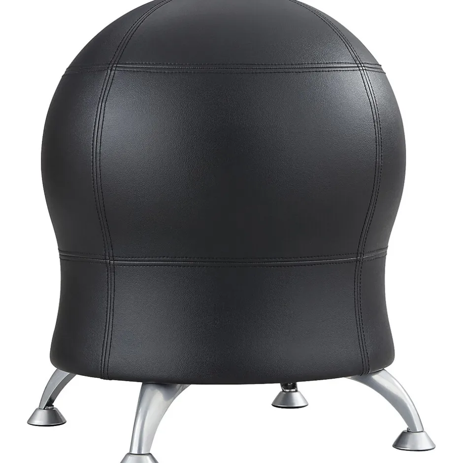 Add a modern, alternative touch to your office or waiting room with this innovative ball chair. Its unique design provides an active, stimulating seating to keep your attention focused on the task at hand. The black vinyl upholstery is both attractive a nd easy to maintain, and it highlights clearly the distinctive shape of the chair. The four powder-coated steel legs and stationary glides further enhance the strength and balance of the structure, giving it remarkable resistance and weight capacity.