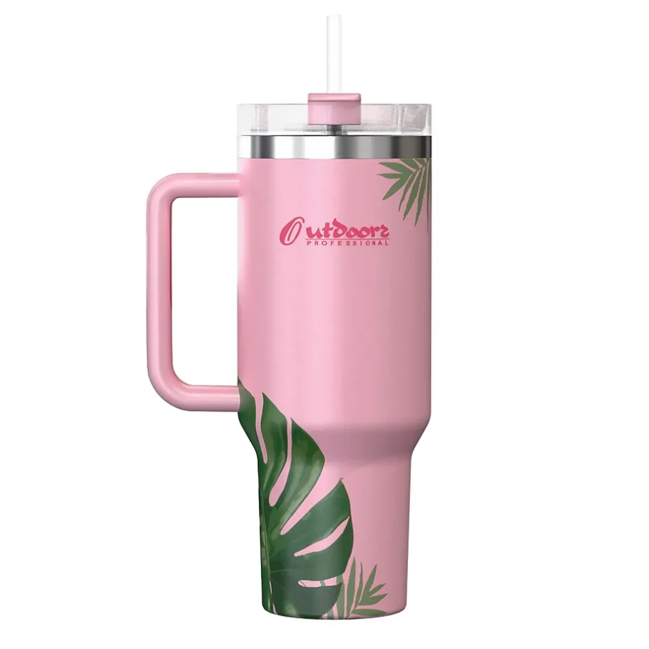 The Outdoors Professional 40-Oz. Tropical Pink Tumbler’s double-walled, vacuum-insulated technology will keep iced drinks cold for up to 48 hours, no-ice drinks chilled up to 11 hours, and hot drinks hot for up to 7 hours! No more settling for lukewarm sips or diluted flavors! If you’re on the go, this tumbler is built to fit any standard cup-holder. These tumblers are lightweight and durable. Crafted with stainless steel that is 100% BPA-free and nontoxic, this tumbler is built to withstand the rigors of everyday use, ensuring its durability for years to come. This tumbler features a screw-on splashproof straw lid to avoid spills and leaks. It’s not only lightweight and easy to carry but super easy to clean. Hand-washing is a breeze as the wide mouth allows for effortless access to every nook and cranny. It’s also dishwasher-friendly: simply toss it in, let the dishwasher work its magic, and have a sparkling clean tumbler!