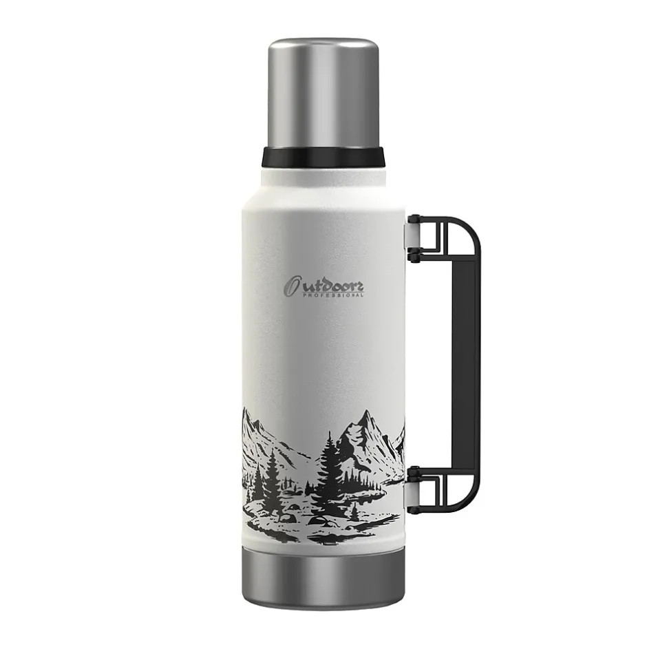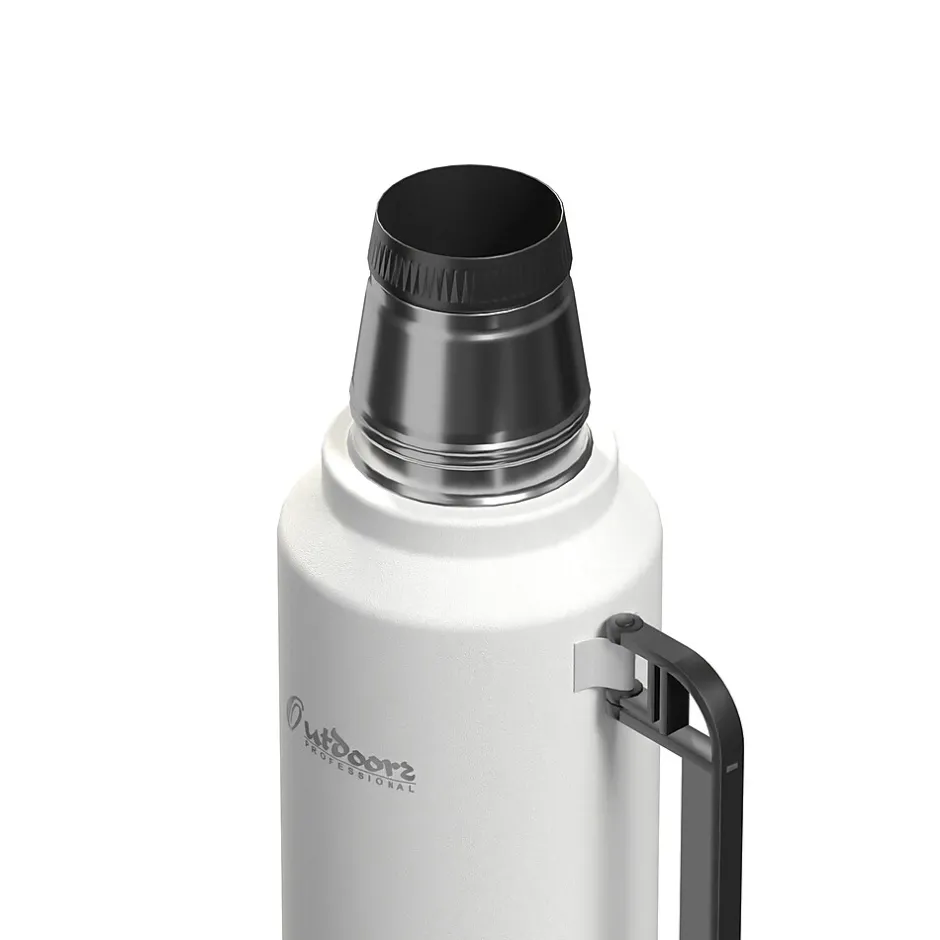 The Outdoors Professional White Mountains 33.8-Oz. Termo Classic Vacuum Bottle with Carry Handle is made with superior insulation that keeps liquids (soup, coffee, tea) hot for up to 24 hours or cold drinks cool for up to 24 hours. Add ice to your favorite beverage and the Termo classic will keep it cold for up to 5 days. The rustproof stainless steel construction means it can work just as hard as you do without impacting its performance. This is an ideal bottle to throw in your truck, work bag, or travel with it. It’s made with BPA-free materials, keeping its contents safe to consume. This 1-L bottle features a leak-resistant lid, so you can put it in your backpack without worrying about any spills. The wide mouth opening helps with easy pouring into the lid that doubles as a cup. The collapsible handle makes it easy to transport when you’re on the go.