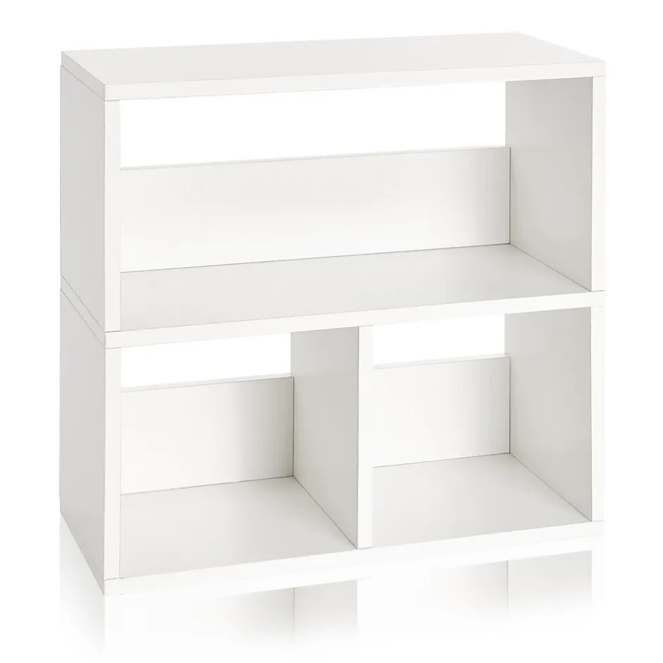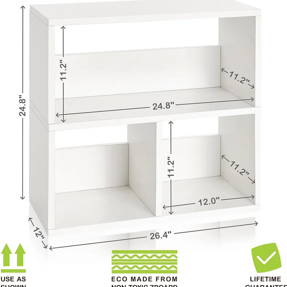 Short and sweet. That’s the best way to describe the white Collins Cubby Organizer.Short and stout in design, and we mean that in a good way. Great for any space in your home and has 3 compartments; 1 is long and rectangular and the other 2 are the classic cubby size for maximum storage potential. The unit is made from zBoard recycled paperboard, it is non-toxic, free from formaldehyde and VOC, making it safe for you and your family. Tool free assembly too!Just peel the 3M adhesive, stick and you’re done.