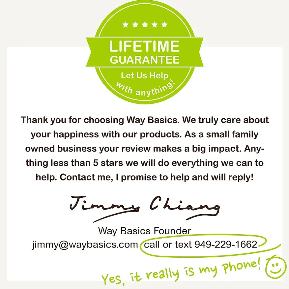 - Lifetime Guarantee; Happiness with product and service promised by CEO and Founder