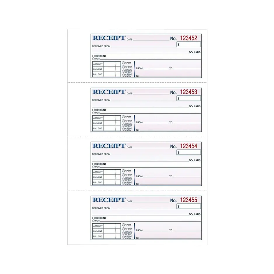 - Money receipt book is consecutively numbered for easy organization
