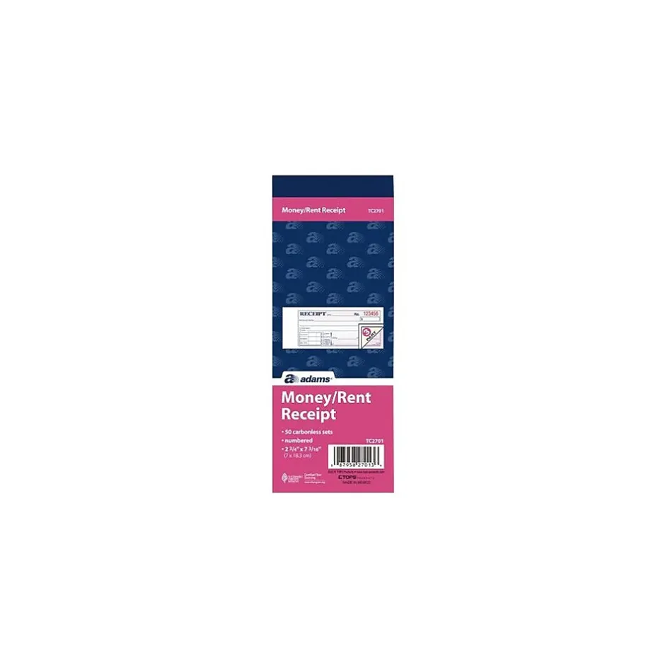 The TOPS TC2701-3 3-part money/rent receipt book with consecutive numbering, is perfect for rent or any other type of payment.