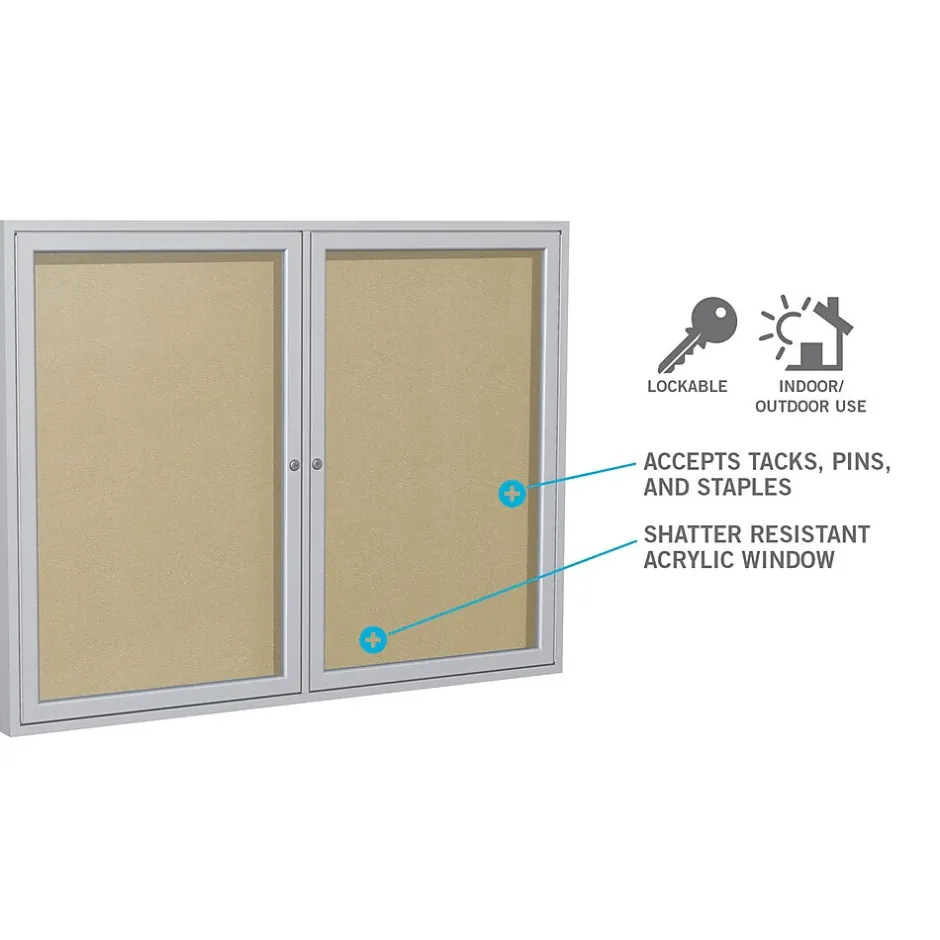 Ghent’s Enclosed Vinyl Bulletin Board is the perfect way to display messages, pictures, and important information securely. The message center is made with a vinyl tack surface that hides pin holes and holds up under repeated tacking, providing years of reliable service. When used outside, our vinyl board will not break down or mold, unlike cork enclosed boards. You do not have to worry about damage from weather or humidity as long as you hang the board under an awning or overhang. Ghent’s 3-door enclosed bulletin boards are protected using shatter-proof acrylic panels, full-length door hinges, and locks that are flush with the frame. You can install the board in high-traffic, public areas without worrying about damage or tampering. Hidden corner brackets allow the message center to sit flush against the wall without any visible hardware which adds protection from vandalism. The colored vinyl surface is paired with a Satin aluminum frame and includes 2 keys. Ships to you in Ghent’s worry-free packaging, designed specifically for shipping enclosed boards. Ghent’s Enclosed Vinyl Bulletin Board carries a 10-year warranty and is made in the USA. Perfect for indoor and outdoor use.