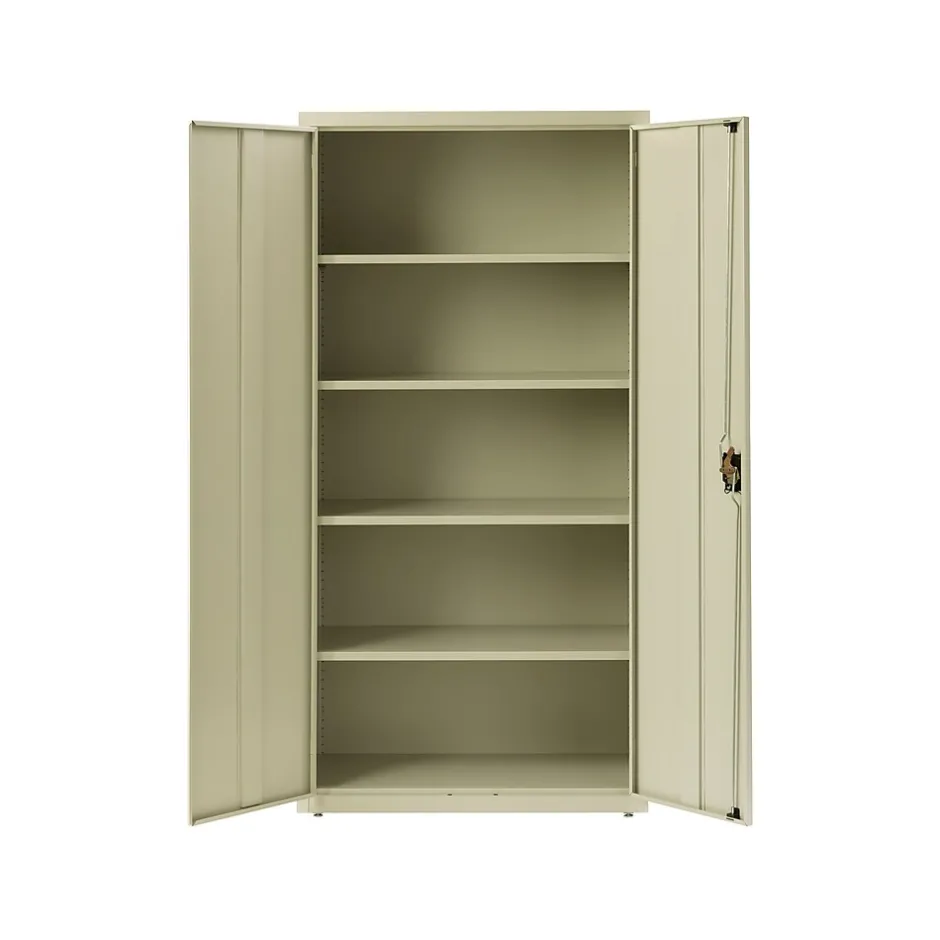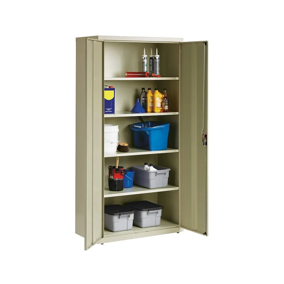 Industrial grade steel storage cabinets provide a concealed storage solution that is useful in a variety of places including your home, garage, basement, business, industrial, education, hospitality and healthcare. Storage cabinets are a space-efficient, flexible storage solution. Durable, fully welded construction storage cabinet that will help keep your essential materials organized and secure. Painted Steel is a non-porous surface that is easy to clean. Recessed handle with core removable lock and lock rods provides a three point locking system for extra security for your items. Core removable locks can be keyed alike to other units. Four shelves are included with this storage cabinet. Shelves are adjustable in 1″ increments with 180 pounds capacity per shelf. Limited lifetime warranty. Baked enamel paint provides a smooth durable finish. Meets or exceeds ANSI-BIFMA industry standards. Greenguard gold certified for indoor air quality.