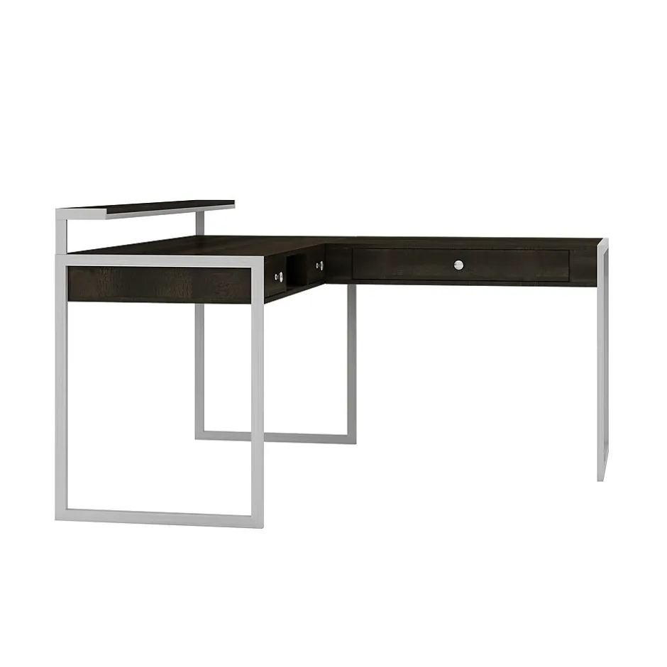 Enhance productivity and give your office a modern touch with this Whalen Asherton L desk. Ideal for maximizing office space, this understated desk fits easily in most workspaces and enhances office decor with its sturdy titanium-finished metal frame and handsome harvest oak finish. The L-shaped design offers ample space for computers and office equipment, while the built-in riser provides space for displaying photos and personal items. This Whalen Asherton L desk offers plenty of storage with three built-in drawers.