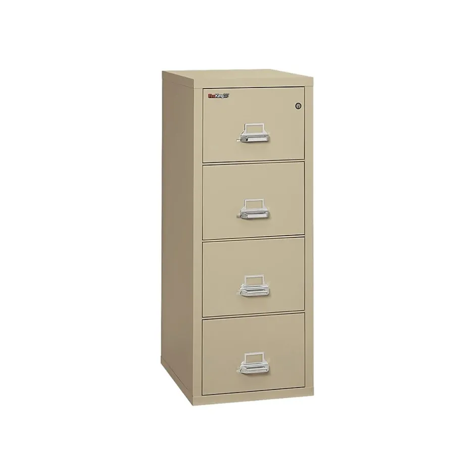 Use this heavily insulated vertical file cabinet to organize legal-sized folders. The inter-drawer insulation of this cabinet keeps files safe in the event of a fire, and the high-security key lock ensures that documents are for your eyes only. This file cabinet comes equipped with water-resistant technology, which prevents water from damaging files. With four roomy drawers, this FireKing file cabinet offers enough space to store essential papers for optimum organization.