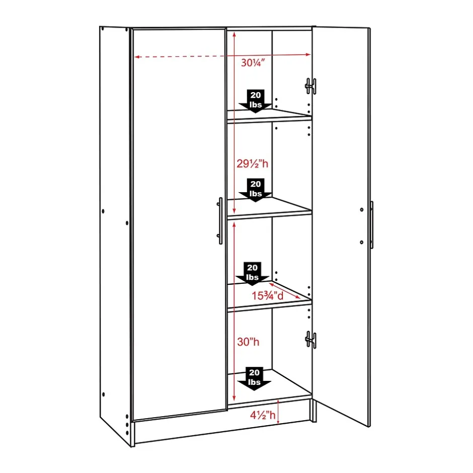 - Internal Dimensions: 30.25″W x 59.5″H x 15.75″D