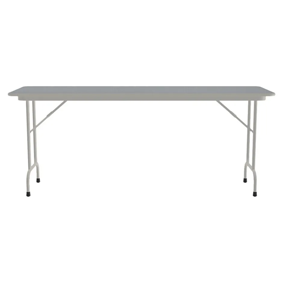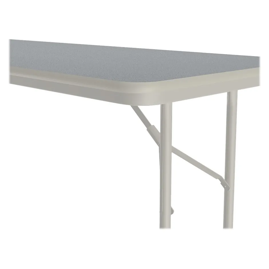 The Correll folding table is durable for heavy-duty home, office, school, church, food service, and commercial use. Its thermal-fused laminate top is water-, stain-, and dent-resistant. The table folds for portability and storage space.