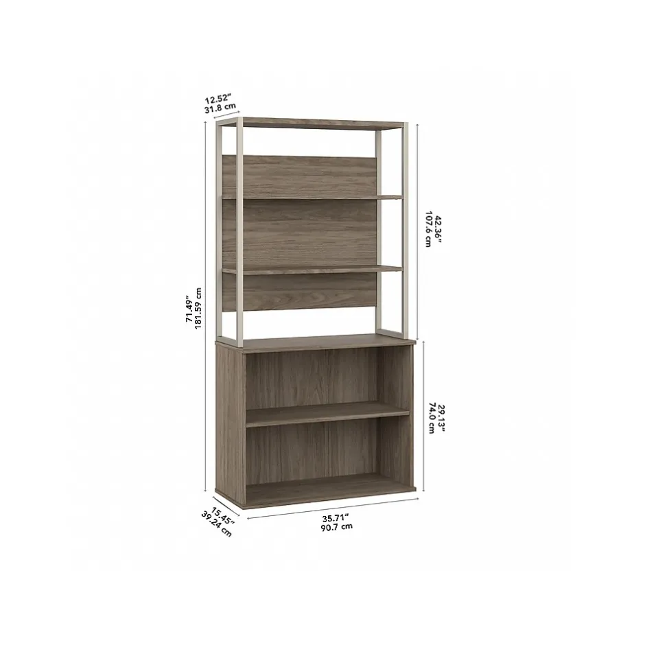 - Bundle includes: small two-shelf bookcase and 36″W bookcase hutch