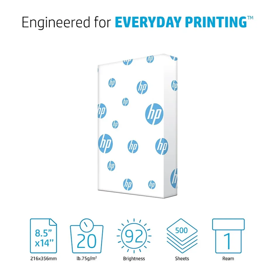 Handle daily printing and copying tasks with this HP office paper. The legal-size sheets lend themselves to a wide variety of uses, while the bright white color creates a bold color contrast for both images and text. This HP office paper features opaque construction and a 20-pound paper weight to prevent bleed-through.