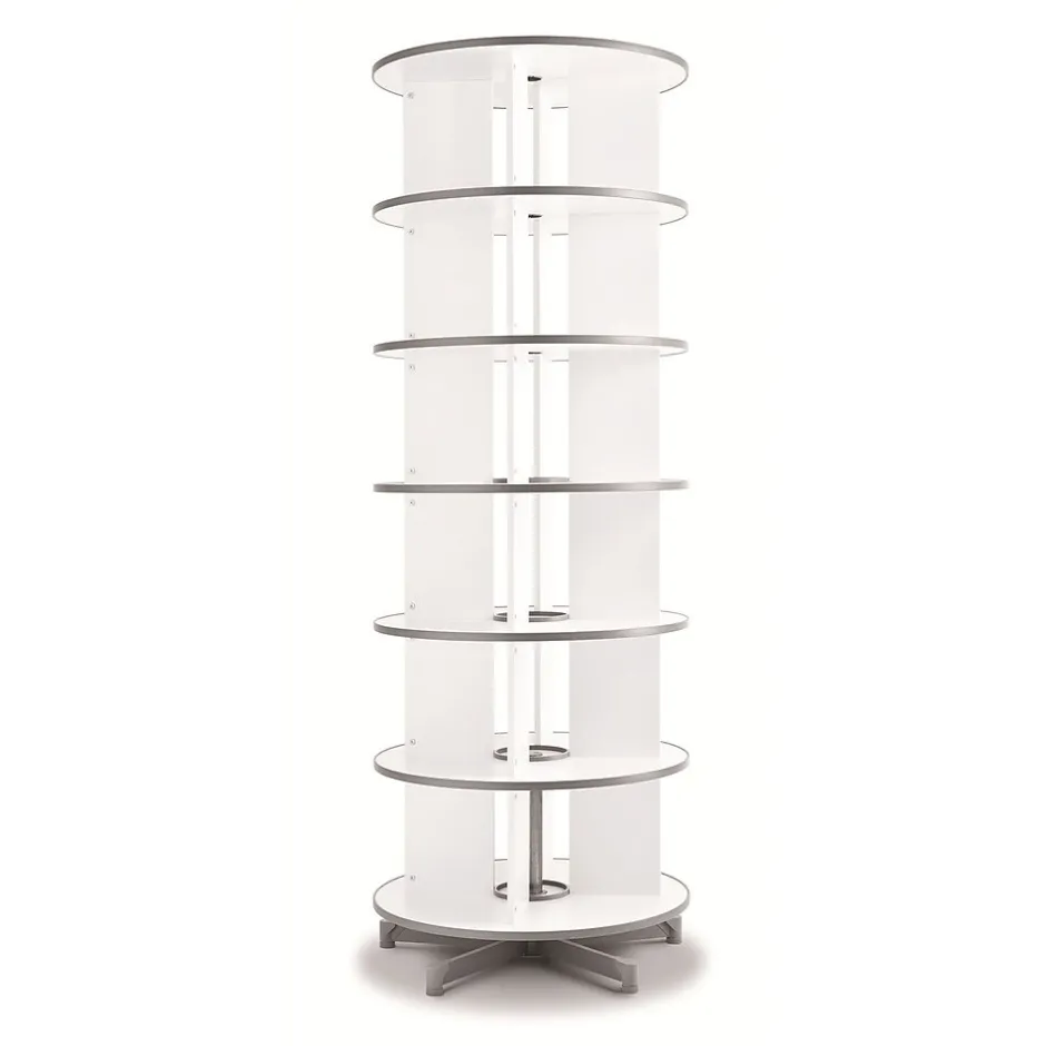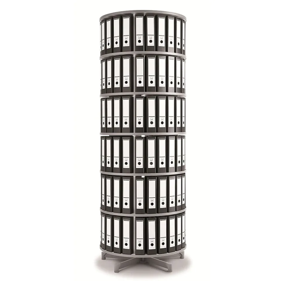 Moll Six tier spin and file binder storage carousel can be accessorized with casters, organizer set and CD organizer. Carousel features slender 32″ diameter unit which offers abundant storage in a small area.