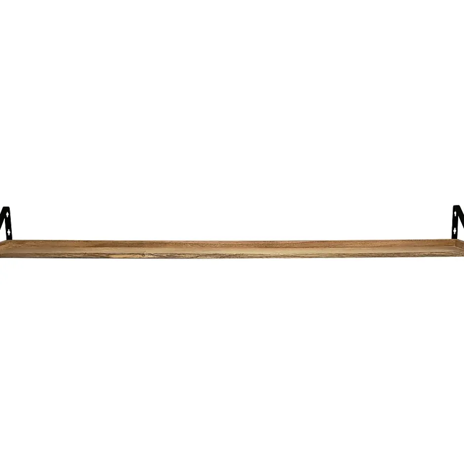 This Eden Grove Shelving real-wood ledge with metal brackets has a smooth surface with rounded edges and an even tapered style. The sturdy metal brackets enhance the ledge and are simple to install. The finish of the real wood varies in color due to the nature of the natural material. The look of reclaimed wood is part of the trendy accent this ledge will make to your home or office.