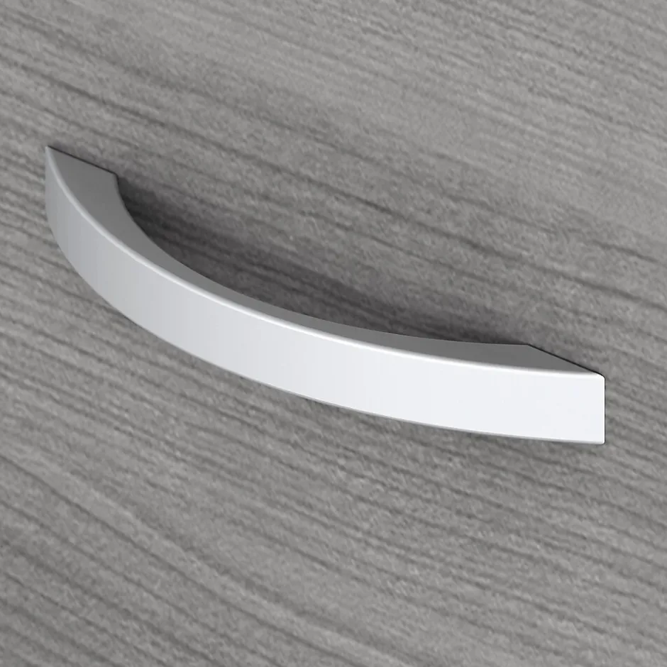 - Thermally fused laminate over composite wood in a platinum gray finish