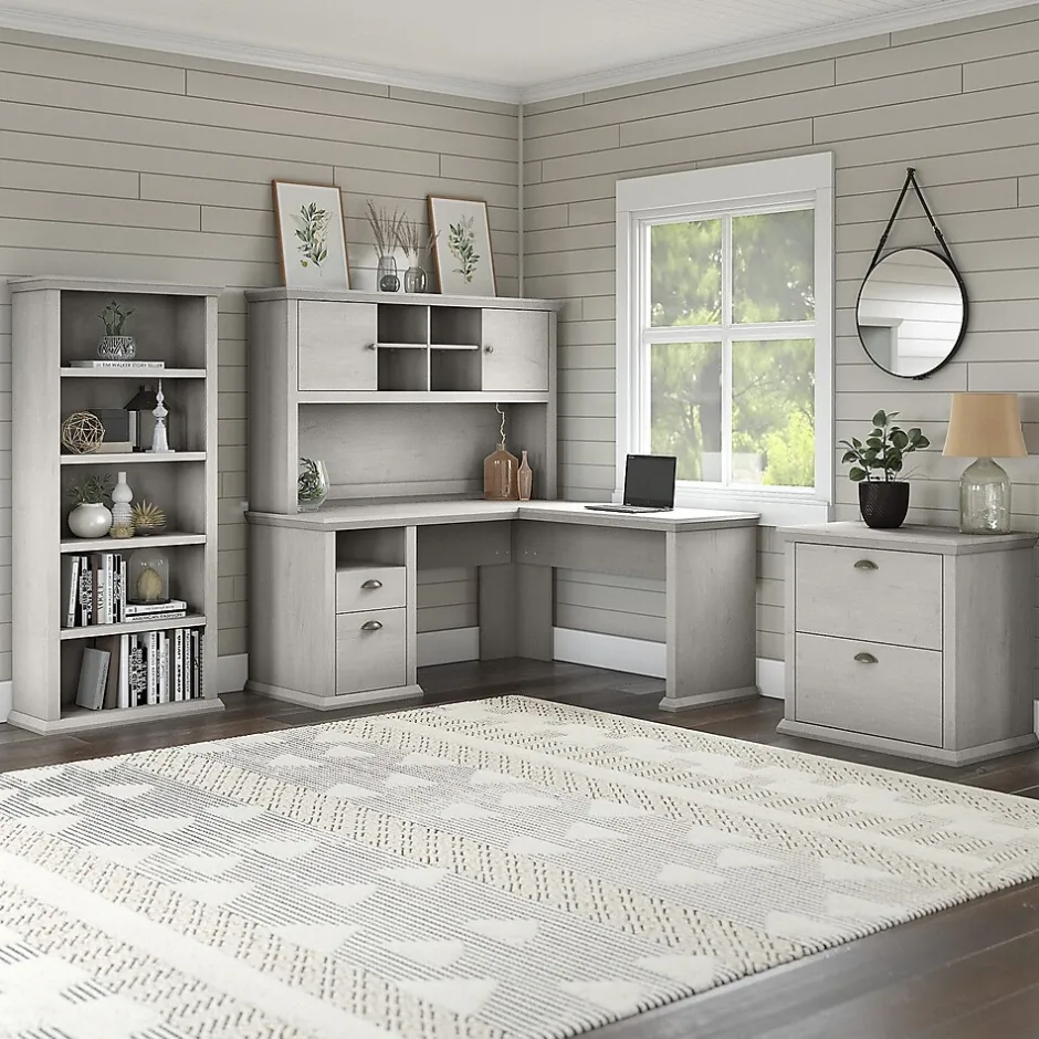 - Tall bookshelf matches the height of a Bush Furniture Yorktown desk with hutch (sold separately) for a coordinated appearance