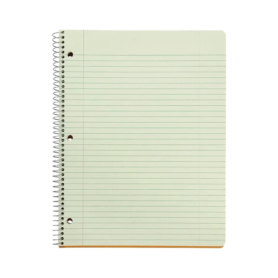 Refer to past notes easily and create new ones with this letter-size college-ruled notebook. With a wire-bound spine, this notebook can lie perfectly flat or completely fold in half, so you can write notes more comfortably and turn pages quickly. This Oxford one-subject notebook comes with 80 sheets of green-colored paper, for easy reading, while the tan rigid kraft cover provides enhanced durability.
