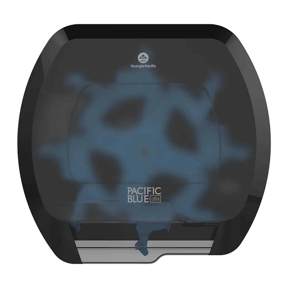 The Pacific Blue Ultra coreless toilet paper dispenser helps improve the restroom experience, reduce maintenance, run-outs, and waste, which can help save money and storage space. It holds four jumbo rolls of coreless toilet paper to help minimize the need for maintenance and keeps them covered until use, for a more hygienic dispensing system. And because this commercial toilet paper dispenser uses 99% of the roll before moving to the next one, it can help reduce waste and costs.