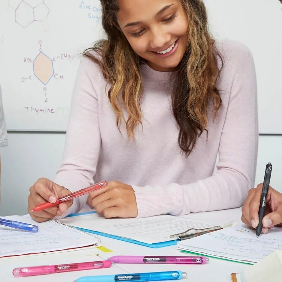 With 14 brilliant colors to choose from, your notes will be bright and filled with fun. Perk alert: these colorful pens are fully wrapped with a comfort grip (because words should never hurt you) and feature a smooth style that keeps the joy flowing as fast as your thoughts.
