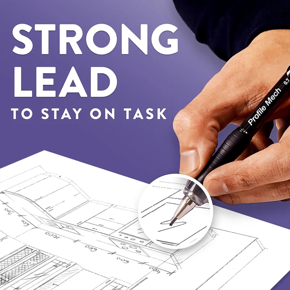 Paper Mate Profile Mech mechanical pencil combines the look and feel of a pen with the performance and versatility of a pencil, so you stay sharp during any writing task. It features a comfortable grip that helps you keep writing until the job is done. This pencil contains 0.7mm HB #2 pencil lead, making it great for school, home, or the office and perfect for standardized testing.