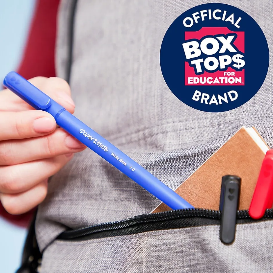 Paper Mate Write Bros medium-point ballpoint stick pens with blue ink make notetaking simpler thanks to lightweight, no-nonsense construction, smooth ink delivery and steady lines. The tops fit securely onto each end of the pen and the clip lets you keep pens handy in your pocket, portfolio or folder.