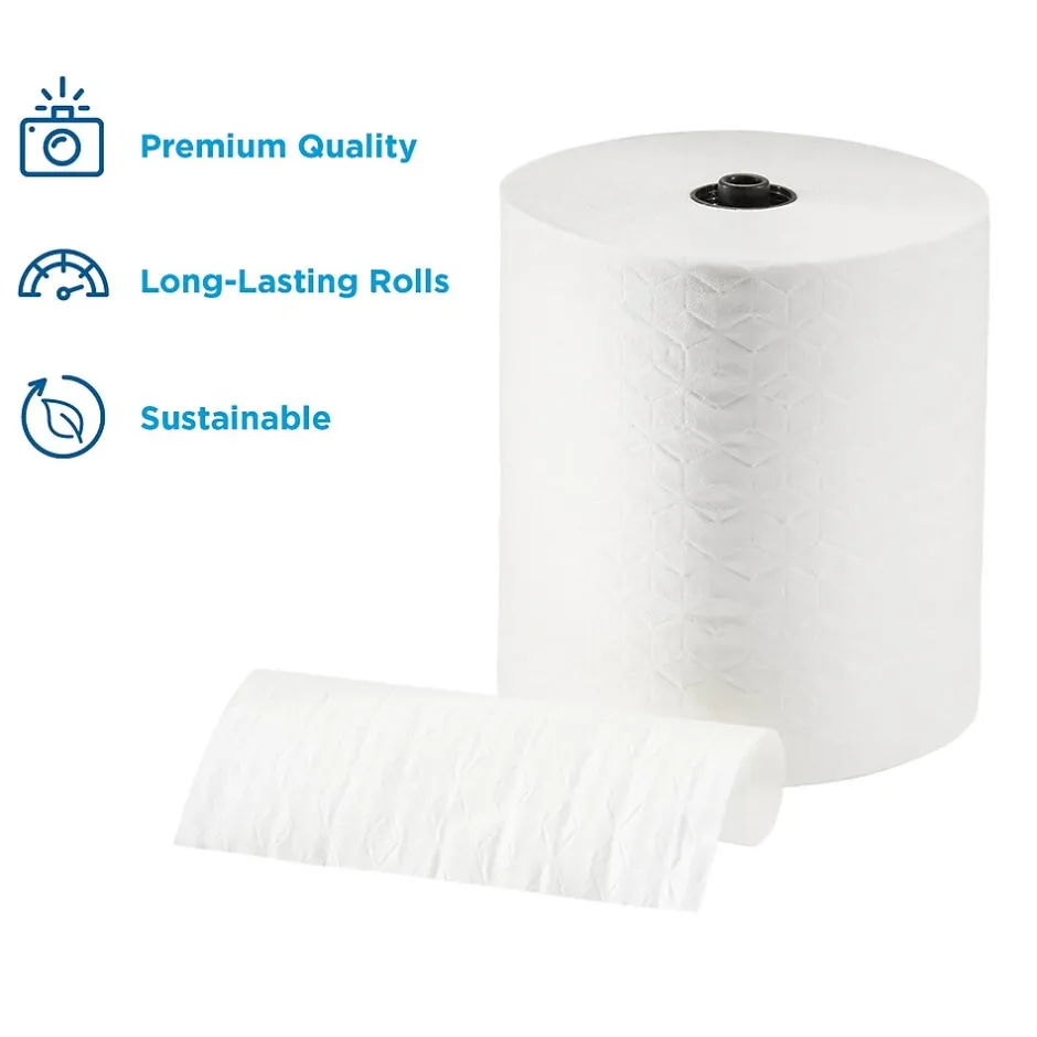 Handle everyday cleaning tasks or stock your office building’s public restrooms with these premium paper towel rolls. The 1-ply construction cuts down on paper waste, while the thick, absorbent design soaks up spills effortlessly. A unique design ensures compatibility with touchless dispensing systems for a more hygienic approach to hand-drying in restrooms or kitchens. Each of these enmotion paper towel rolls yields 425 feet of usable product, so you can go longer in between replacements.