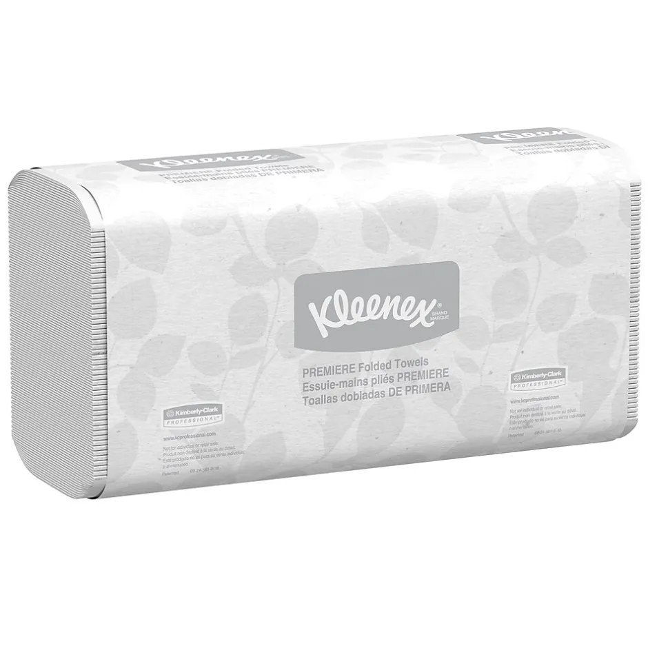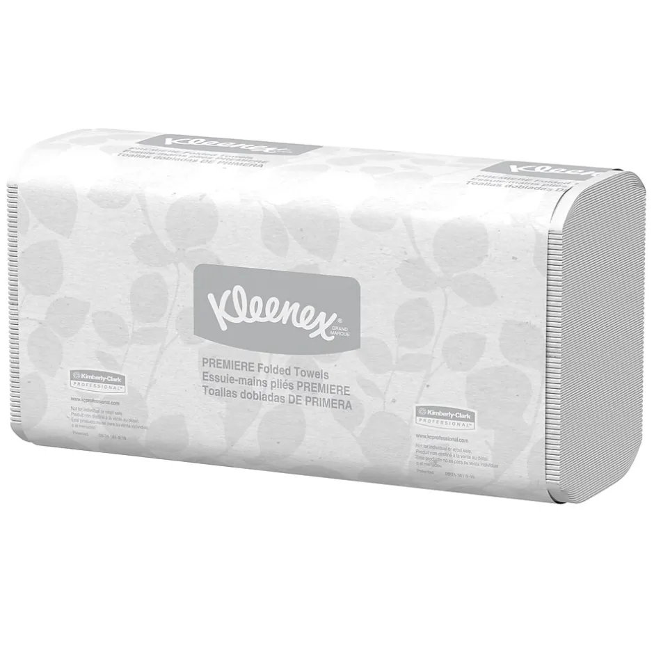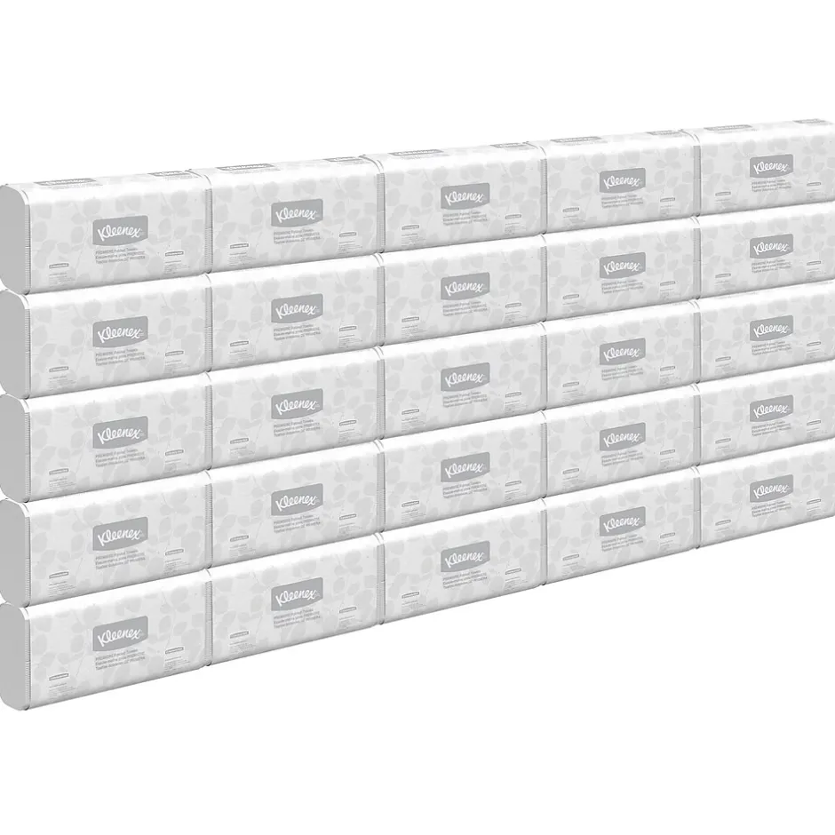 Stock sink areas with this 3000-count case of premium folded paper towels. Featuring exclusive absorbency pockets, these towels quickly wick away moisture to dry hands faster, and the white fiber material is gentle on skin but tough enough to wipe up spills. With a patented multifold design, these paper towels resist tearing and dispense one at a time for less waste. These Kleenex Premiere folded towels contain 120 sheets per pack, so you can distribute them among multiple areas, or use this 25-pack case to stock up.