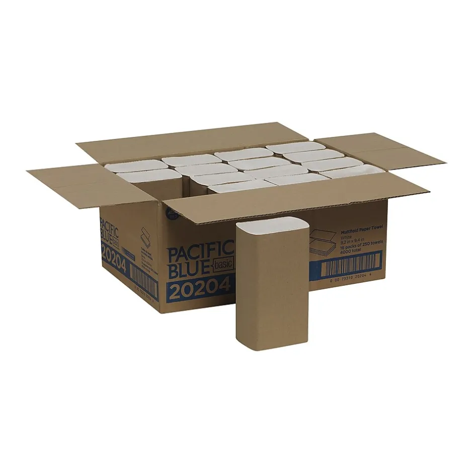 Stock your break room or office restrooms with these Pacific Blue Basic multifold paper towels. The folded design fits neatly into compatible dispensers, making it easy to grab one paper towel sheet at a time. The absorbent one-ply construction offers an ideal option for drying hands or cleaning office messes, and the white color lends an upscale look to restrooms. With 4,000 sheets in each case, these Pacific Blue Basic multifold paper towels make it easy to keep all your dispensers full.