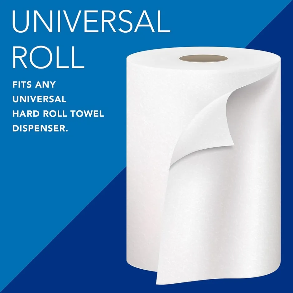 - 800’/Roll, 12 Scott® Universal 100% Recycled Fiber Hard Roll Towel Rolls/Case; 9,600’/Case; with Absorbency Pockets™; 1.5″ Core; White; This product is part of Kimberly-Clark Professional’s Responsible Partners program designed to reach our sustainability goals.