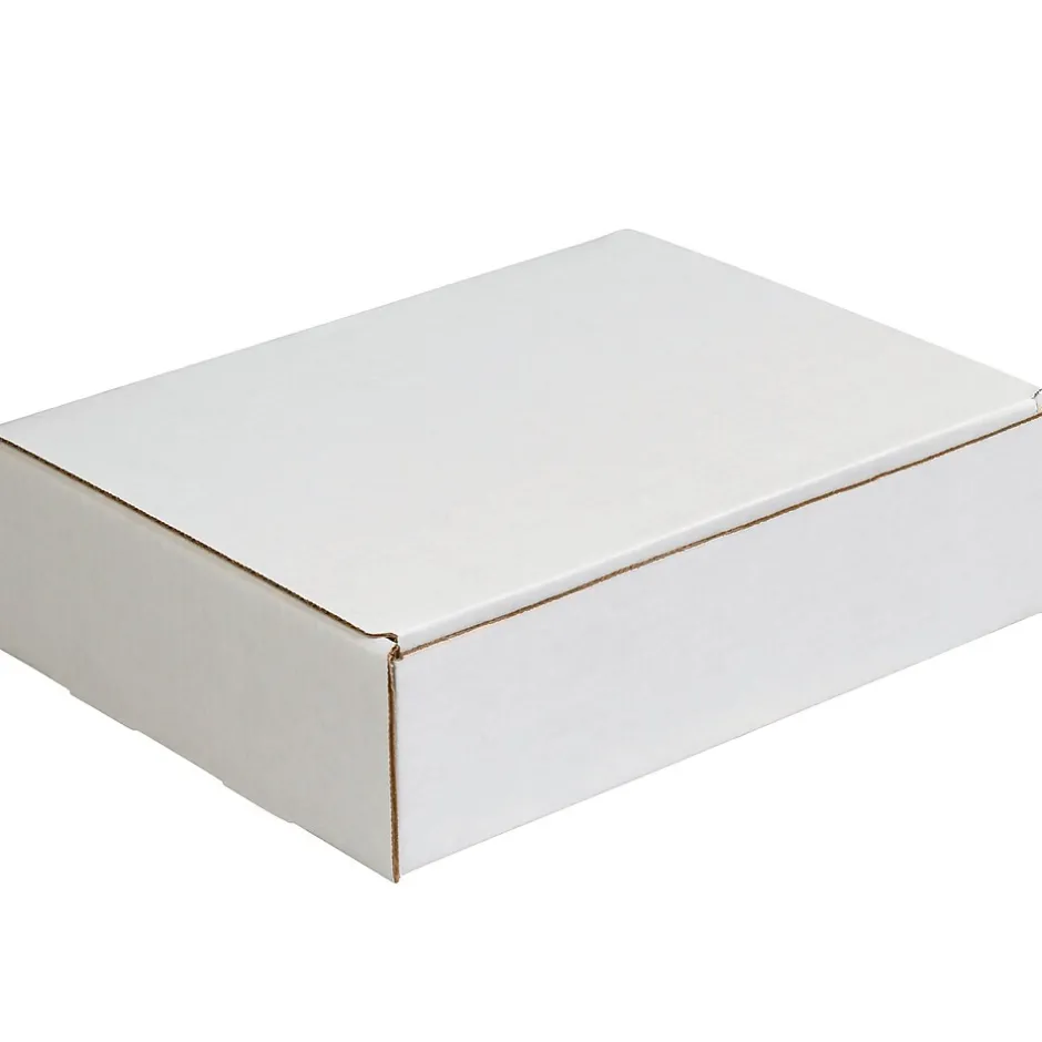 9″ x 4″ x 3″ Literature Mailers. The perfect fit for your literature piece without the expense of a custom carton. Assembles in seconds without tape, glue or staples. Strong 200#/ECT-32-B oyster white corrugated construction. Ships and stores flat to save space.