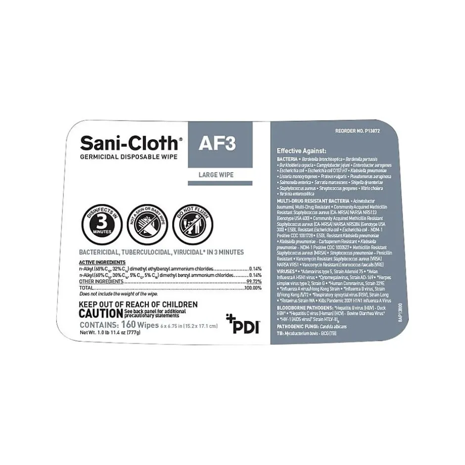 Protect staff, patients, and guests from germs with these handy disposable wipes. The 160-count container includes a convenient pop-top, making it easy to grab one wipe at a time. These PDI Sani-Cloth wipes are alcohol-free and fragrance-free, making them ideal for use around people with respiratory sensitivity.