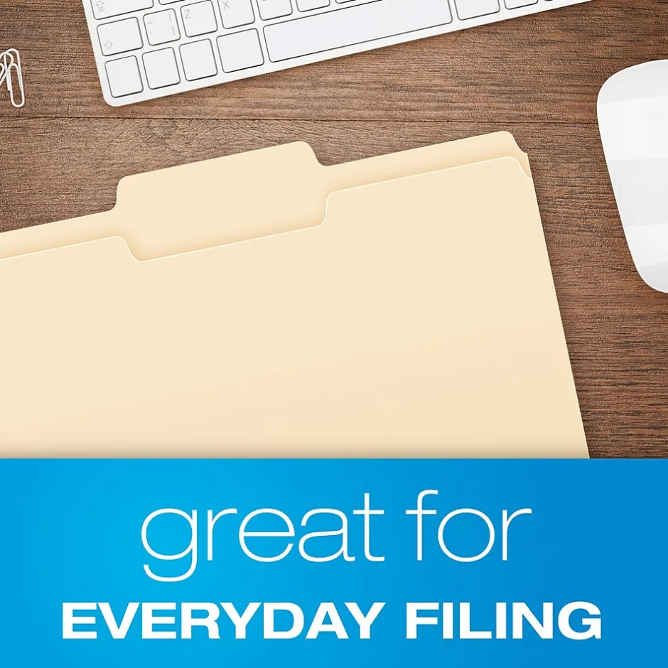 Pendaflex Reinforced File Folders are perfect for your everyday filing needs. Durable 11 pt. manila covers can stand up to active projects. These letter-sized folders fit nicely in your standard hanging Reinforced File Folders. 1 Tab in center position for straight line filing.