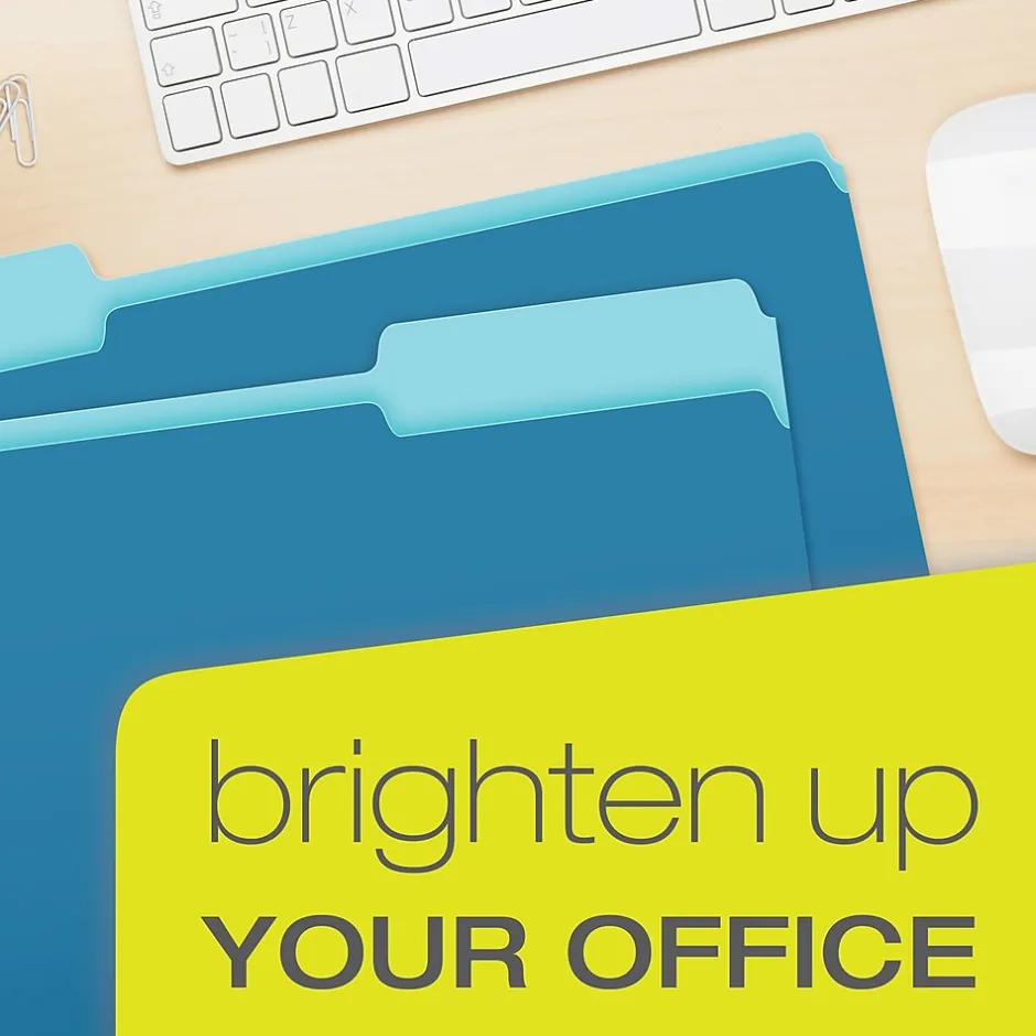 Interior file folder in blue color fits neatly inside a hanging folders without obscuring tabs. Folder features two-tone design that prevent misfiles and is reversible to double your color options.