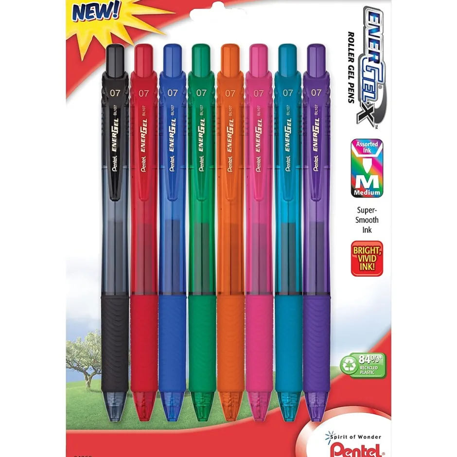 Pentel EnerGel-X RollerGel retractable medium-point gel-ink pens contain a quick-drying ink formula that reduces smudges and is perfect for left-handed writers who move quickly across the page. The assorted colors help staff create color-coded systems or vibrant graphics-based presentations and reports. A soft, latex-free grip makes handling each pen easier, while lightweight plastic construction reduces hand fatigue. Each pen contains 84-percent recycled plastic, which helps your business meet its sustainability goals by reducing landfill waste.