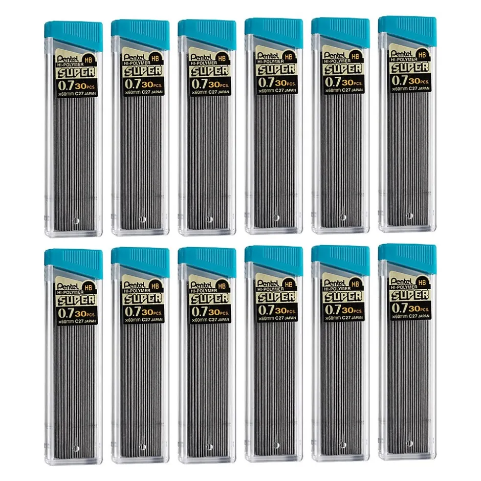 The world’s #1 selling lead refills. Never needs sharpening and equivalent to #2 wooden pencils. Writes smooth dark lines and proprietary lead formula resists breaking. HB lead is guaranteed to scan on standardized tests. Each tube of Pentel Super Hi-Polymer HB lead is made of 100% recycled plastic and part of the Pentel Recycology line of products. 0.7mm lead produces crisp, medium lines of consistent density. Ideal for accounting and all general writing applications such as notes, letters, etc. Fits all 0.7mm mechanical pencils. 30 Pieces in each tube. Sold as 12 tubes for a total of 360 pieces.