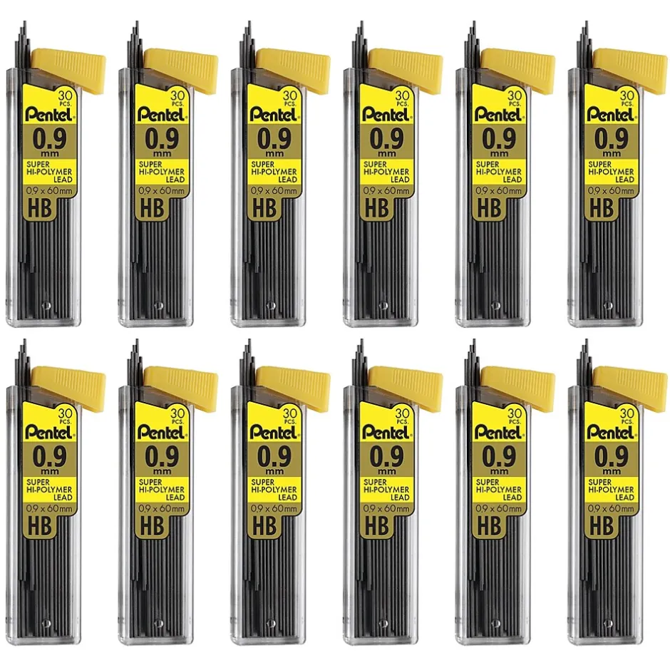 Pentel® Super Hi-Polymer® Lead is the #1 selling brand in the USA! HB Lead is guaranteed to scan, never needs sharpening, is strong and produces a clear dark line. 0.9mm lead creates bold lines of consistent density and is equivalent to a #2 pencil. Each tube of Pentel Super Hi-Polymer HB lead is made of 100% recycled plastic and part of the Pentel Recycology line of products. Each tube contains 30 pieces. Sold as 12 tubes for a total of 360 pieces.
