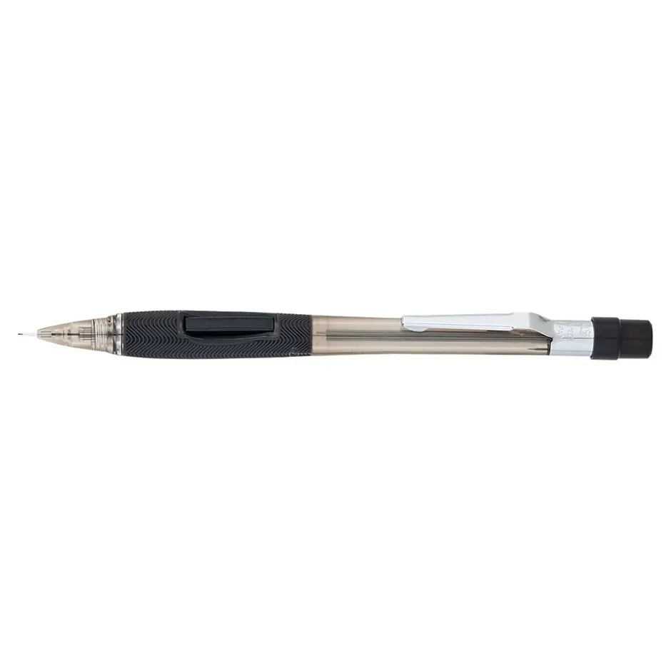 Edit papers, do crosswords or take on other writing projects with these black-barrel automatic pencils. The brass clutch ensures consistent lead advancement every time you click these Pentel Quicker-Clicker automatic pencils, while the rubberized grip provides comfort and control.