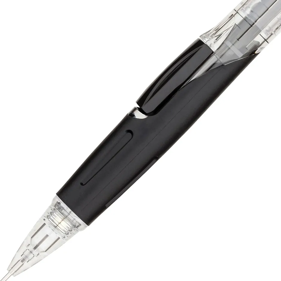 Features an extra-long, twist-up eraser.The quick and unique side click button advances lead easily without having to change writing position.Equipped with an easy-to-hold barrel and a soft latex-free grip for exceptional comfort.