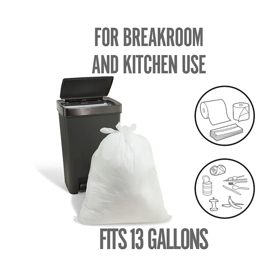 - 13 gal. regular-strength flap-tie kitchen trash bags