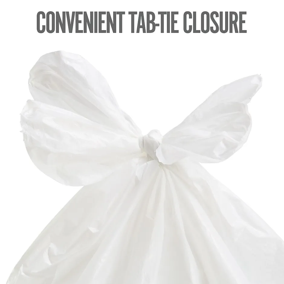 Pack your bags with all the breakroom trash when you use these tab-tie kitchen trash bags. These tall bags always have room for dessert plates and their utensil friends, while the twist ties keep everything wrapped up for easy disposal. With 80 Perk™ tab-tie tall kitchen trash bags in the box, you’re ready to trash junk mail, junk food and just about junk anything.
