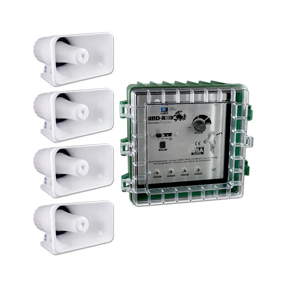 Repels the most stubborn Canada Geese from outdoor areas. The GooseBuster® is a one-of-a-kind system was developed using decades of scientific research involving the behaviors and vocal communications of Canada geese. The scientifically-proven GooseBuster® broadcasts authentic Canada goose sounds; the alert call lets geese know there is potential for trouble and the alarm call signifies immediate danger. Because the GooseBuster® is programmed to constantly change frequency, duration, and sound combinations – geese feel under threat and evacuate the area without identifying the source.