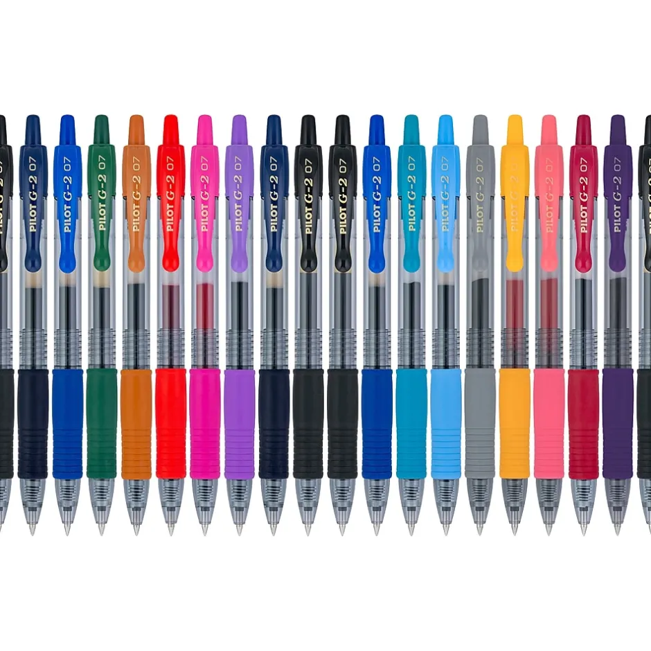 The Pilot G2 premium gel ink pens are as unstoppable as you. G2’s smooth writing gel ink is proven to last longer than the average of competitive gel ink brands. No wonder it’s one of the best-selling gel ink brands in America. These pens come in a 0.7mm point size, with over 10 ink colors and a convenient barrel design.