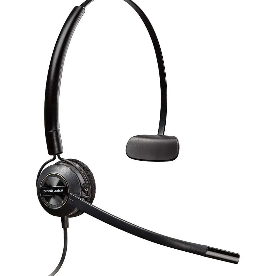 Created with call-intensive environments in mind, this Plantronics Encore headset makes an excellent choice for busy offices. Designed to minimize operational disruptions and costly downtime, this Plantronics headset features wideband audio that deliver s rich, clear conversations and SoundGuard technology that protects from noise spikes and listening fatigue, helping it meet OSHA/Noise at Work regulations. Lightest in its class, this monaural headset can be worn three ways – over-the-head, over-the-ea r or behind-the-neck – to ensure a comfortable experience all day long. Adapter cable not included.