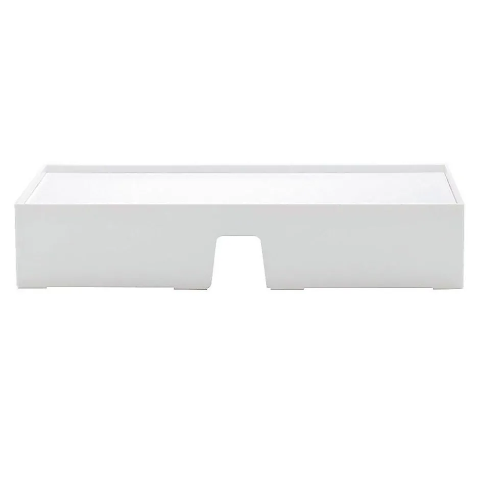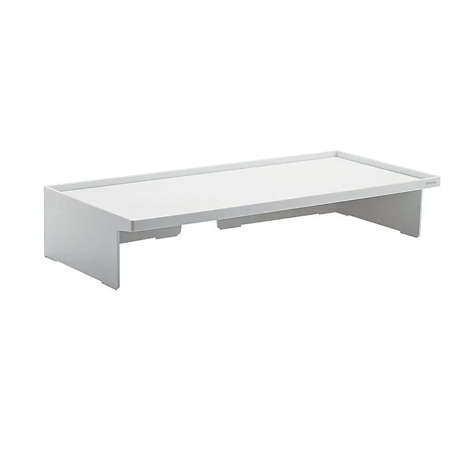 Maximize available workspace with this white monitor riser. The shelf design offers storage space underneath for reference materials, peripherals, or office supplies, while the convenient height positions the screen for increased comfort as you work. A crisp white color brings a clean, modern look to your desk. With a handy cable cutout, this Poppin monitor riser keeps cords and wires neatly organized.