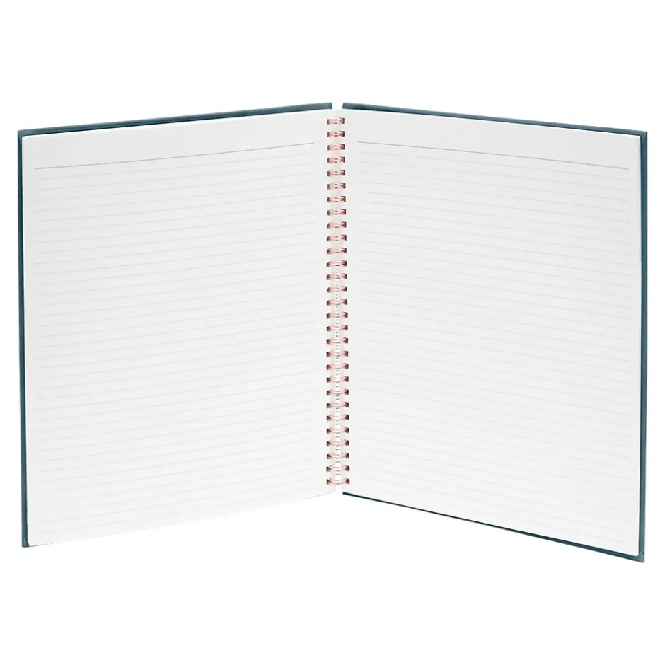 Write down important class details, reminders, and other information in this large notebook. The copper spiral binding adds a stylish flair and allows for easy page turning, while the perforated edges make it simple to remove used sheets. This Poppin Velvet spiral notebook is large, offering plenty of room for writing and has a hard cover, providing increased durability and protection to contents.