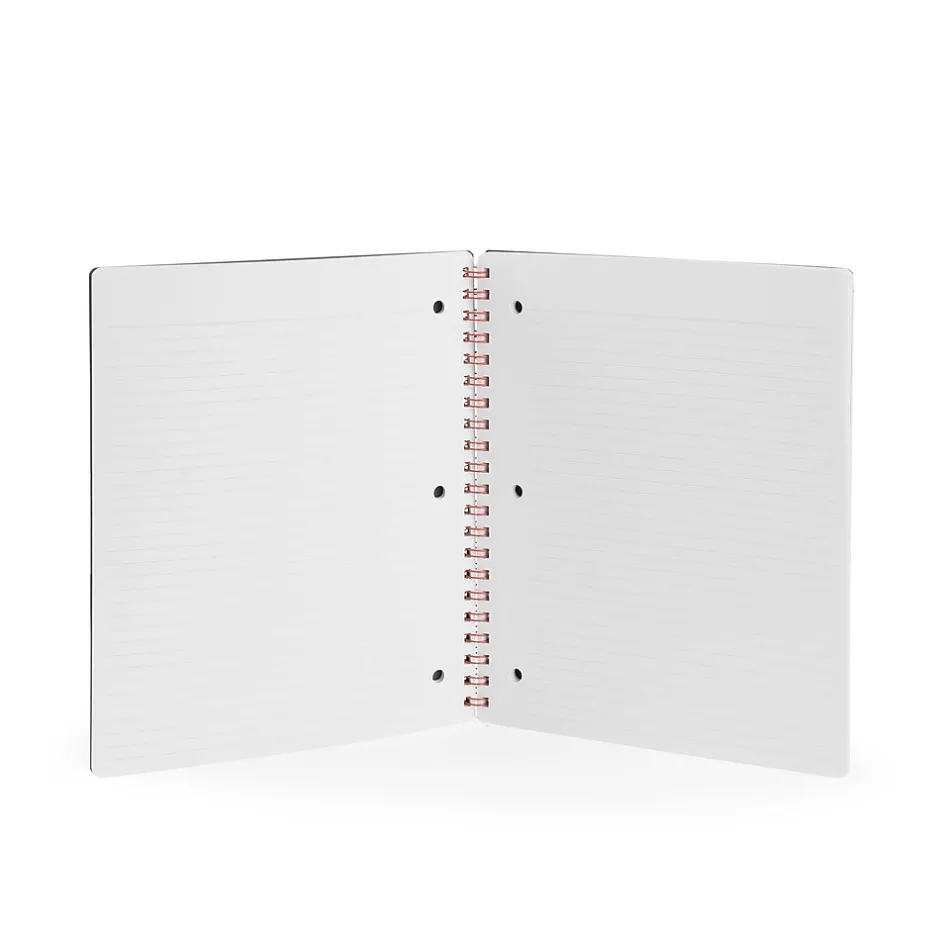 - Wire binding allows book to lie flat on desk surface for maximum writing area