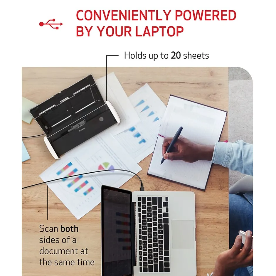 The Canon imageFORMULA R10 mobile document scanner is very simple to set up, and very easy to use, anywhere. Quickly convert paper documents to searchable digital files using the builtāin software to get, and stay, organized