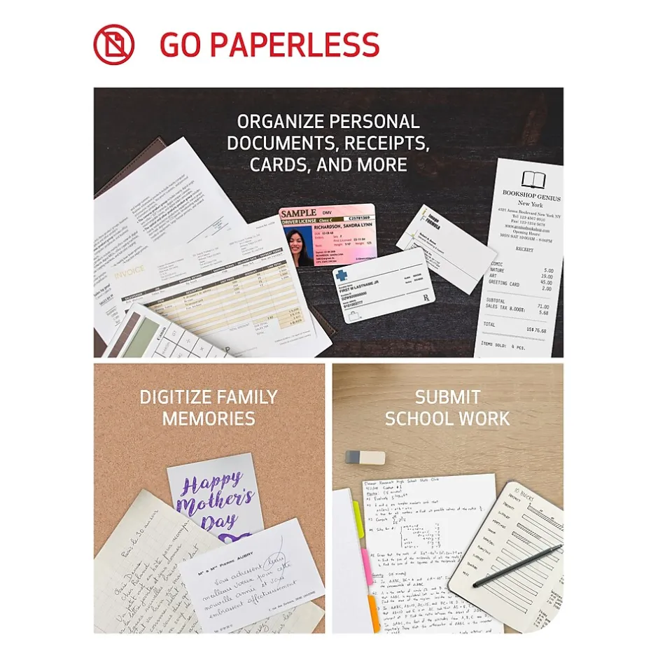 - Reliable scanning of various media types: Letter size paper, receipts, business cards, plastic cards, legal documents, and more